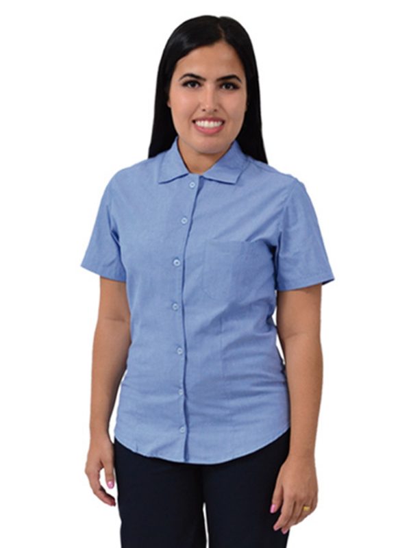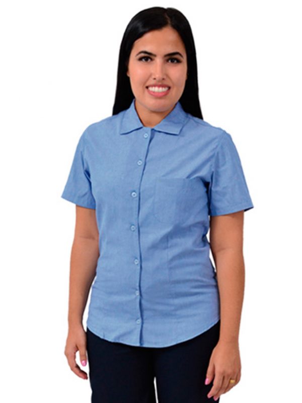 CAMISA AZUL CLARO MESCLA MANGA CURTA FEMININA