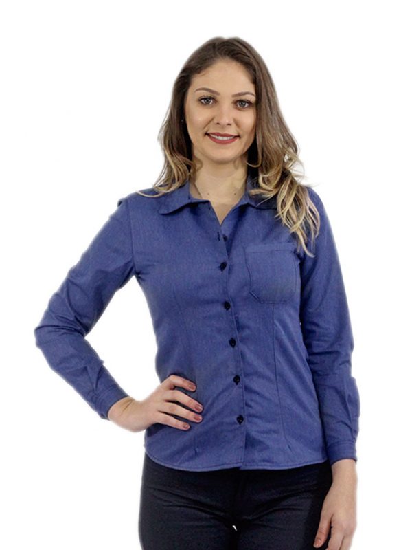 CAMISA AZUL MARINHO MESCLA MANGA LONGA FEMININA