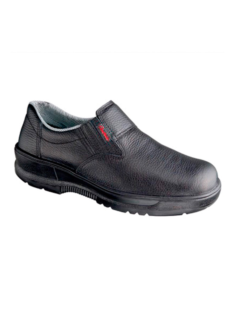Sapato de segurança confeccionado em couro vaqueta integral estampa relax, com elástico nas laterais. Possui palmilha interna removível em EVA com tratamento antimicróbios.